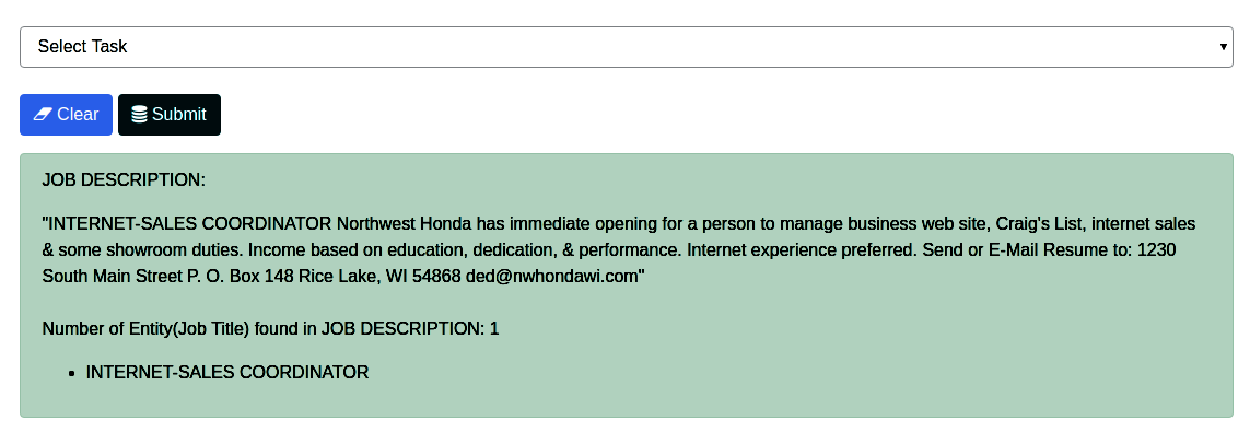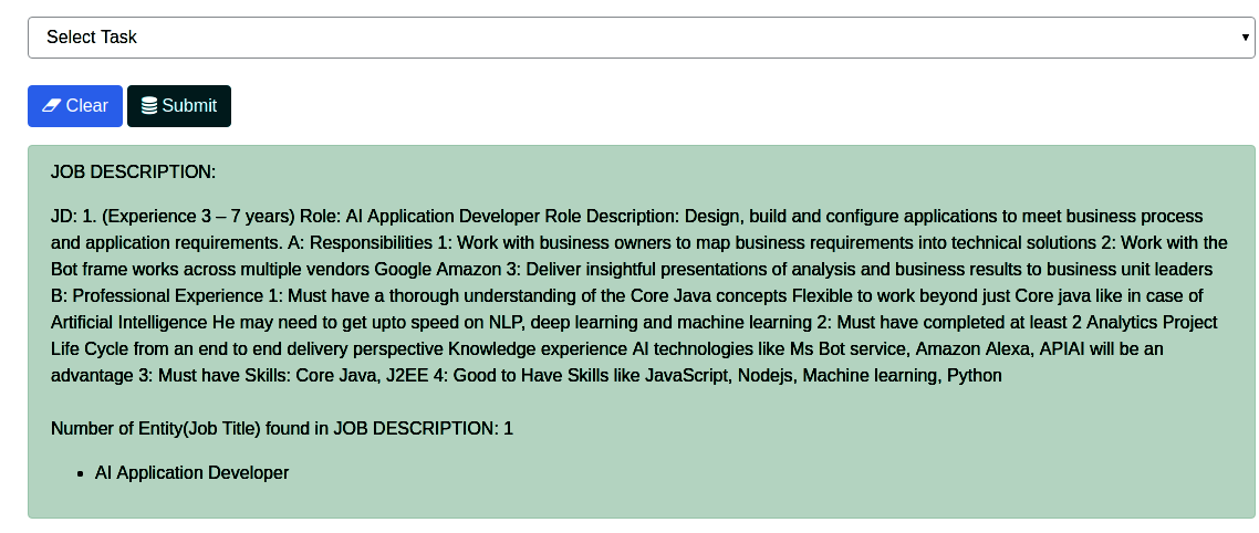 Below You can find some of the example where model did the automatic job title tagging from Job Descriptions.